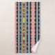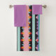 colourful stripes and triangles in turquoise blue, coral pink, mint green, mustard yellow, orange-red, lavender purple, black, white, grey, and brown.
