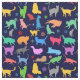 Pattern Of Colourful Cats. Navy Blue Background Fabric