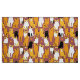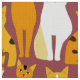 Fabric in a playful pattern of stylised cats in warm shades of ginger, cream, black, and brown on a caramel brown background. Each cat has its own cute expression and markings, with little paw prints scattered throughout.