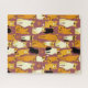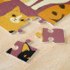 Puzzle in a playful pattern of stylised cats in warm shades of ginger, cream, black, and brown on a caramel brown background. Each cat has its own cute expression and markings, with little paw prints scattered throughout.