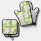 Pattern Of Green Elephants, Stars, Your Name Oven Mitt & Pot Holder Set