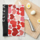 Pattern Of Hearts, Red Hearts, Love, Your Name Tea Towel