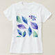 The image shows a pattern of leaves and berries in watercolor in shades of blue, green, and purple.
