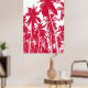 Pattern of leaves. Tropical Palm trees. Bold and impressive graphic abstract palm trees posterised design. Red and white.