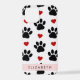 Pattern Of Paws, Black Paws, Red Hearts, Your Name iPhone Case