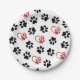 Pattern Of Paws, Black Paws, Red Paws, Hearts Paper Plate