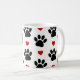 Pattern Of Paws, Dog Paws, Black Paws, Red Hearts Coffee Mug