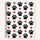 Pattern Of Paws, Dog Paws, Black Paws, Red Hearts Notebook