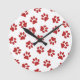 Pattern Of Paws, Dog Paws, Red Paws Round Clock