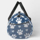 Pattern Of Paws, Dog Paws, White Paws, Blue Hearts Duffle Bag