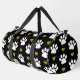 Pattern Of Paws, Dog Paws, White Paws, Gold Hearts Duffle Bag
