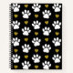 Pattern Of Paws, Dog Paws, White Paws, Gold Hearts Notebook