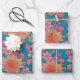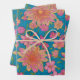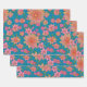 Pattern of pink Flowers on blue Background Wrapping Paper Sheet