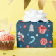 A festive wrapping paper featuring an elegant pattern of colourful candies and lollipops, gift boxes, stars, spruce trees against the dark blue background. Good to wrap up your Christmas, birthday, wedding, or other event gifts. You can transfer this design to a number of other products: tissue paper, gift bags, fabric, pillows, blankets, Christmas stockings, and more. This design is customisable. You can change the image. If you wish to change the size of the image or recompose it on a chosen product feel free to use the "Edit Design" or "Personalise" (as the case may be) button of the blue colour. You will be transferred to the "Design Tool" where you can change the size, relocate images on the right menu panel, and you can add text on the left menu panel. Just be creative, customise and buy one, and be happy!