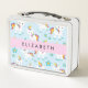 Pattern Of Unicorns, Cute Unicorns, Your Name Metal Lunch Box