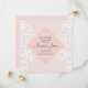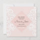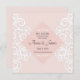 Wedding invitation with white pattern ornament on pink your wedding details with a white border of frame in soft pink. Personalise the card with your information in grey lettering.