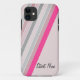 A modern, stylish, and trendy stripe pattern design in grey and white with rose pink colour. The design features easy-to-customise text. A chic, modern geometric design with a feminine personal touch.