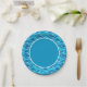 Seamless pattern with blue and turquoise waves with white tribal pattern. Water surface. Vector texture of the ocean and rivers. Wallpaper with a sea ornament. Summer beach fabric with boho decoration