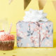 Delicate spring pattern of white and pink watercolor flowers and blue leaves, sakura blossom. Girly floral design. Feminine design