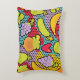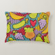 The cushion is small to medium sized. It can be washed. It is well constructed. The material used is pleasant and feels decent quality. It has a very slight plush feel which is good. It is well labelled and its care clearly stated. Theres nothing not to like about it. All in all a good item. The deduction of one star overall is due to long delays in delivery to the UK. It's not clear if this was due to Zazzle or somewhere else in the chain as I did not receive status updates of dispatch or progress. I cannot comment anymore on that other than to say that was our experience but it may not be the same for you. The printing was surprisingly close to what we were expecting. Its an art piece and on material so its hard to assess the precision of printing but it seems close to the original. The soft lines are reproductions of the original. The colour is a fair reflection of the painting. This was printed in the US and it looks like US quality. No issues.