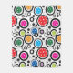 Fleece Blanket with Colourful pickleballs and black circles on white background. Perfect as a gift for a fashionable pickleball player.