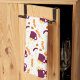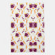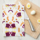 Patterned design with purple cats, yellow fish skeletons, and orange leaves. The playful, whimsical print shown in horizontal and vertical formats.