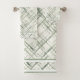 Patterned Moss Green on White Towel Set. Lovely design with border trim. Great for guest baths, as well as gifting.