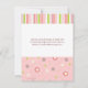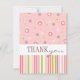 A contemporary design for a modern Mum-to-be. Coordinating patterns of stripes and subtle circles in pastel pink, plum, green and ivory makes a lovely and affordable custom thank you card for our coordinating baby shower invitation.