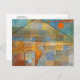 A fine art postcard with the painting by Paul Klee (1879-1940) titled, Ad Parnassum (1932). Klee was a German artist born in Switzerland. A pointillist painting of a multi-coloured house and an orange sun.