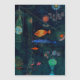 This famous painting is by bauhaus abstract artist Paul Klee showcasing modernism with abstract fish swimming through a black blue ocean. A graphic art abstract expressionist painting.