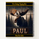 A captivating moose stands tall among towering trees, exuding strength and grace, with a warm glow illuminating its majestic antlers.