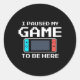 Paused My Game To Be Here 8 Bit Funny Video Gamer Classic Round Sticker