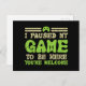 Paused My Game To Be Here Funny Video Gamer Postcard