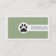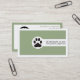Sage green Vet/Veterinary Clinic, paw minimalist business card with qr code on the back that features a black paw on a white circle.The background if of sage green color with white borders. The back includes a QR code for more info. A great design for veterinarians or pet clinic/hospital services.