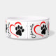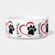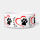 Discover our custom dog bowl featuring a charming illustration of a red heart with a black paw print inside. The design showcases a bright red, curved heart outlined with fluid lines, meeting at a sharp point at the bottom, with a black paw print nestled within. Perfect for pet lovers, this unique bowl combines heartfelt symbolism with practical design, set against a clean white background. Customise your pet’s feeding experience with this adorable, meaningful dog bowl today!