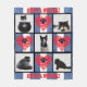 ❤️ Wrap yourself in love and memories! This cosy design features distressed red hearts with blue paw prints against a blue and white denim-striped background, adding a rustic charm to your space. Add your pet's name(s) and five cherished photos to create a one-of-a-kind keepsake. 🐶🐱