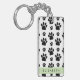 Paw Pattern, Dog Paws, Black and White, Your Name Key Ring