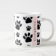Paw Pattern, Dog Paws, Black and White, Your Name Large Coffee Mug
