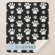 Paw Pattern, Dog Paws, Black and White, Your Name Sherpa Blanket