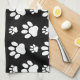 Paw Pattern, Dog Paws, Black and White, Your Name Tea Towel