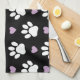 Paw Pattern, Dog Paws, White Paws, Lilac Hearts Tea Towel