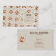 A business card with a paw print pattern and contact information decorated with icons for a dog walker activity. It also could be used for all pet services such as grooming salon, cat sitting, rabbit feeding, fish care, bird care, plant watering, pet boarding, etc. It is fully customisable and hope will help you in your business.