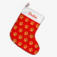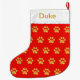 Cute golden paw pattern on red background Christmas stocking. Name can be personalised.