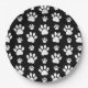 Paw Pattern, Paw Prints, Dog Paws, Black and White Paper Plate