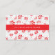 Business card template ideal for dog care, dog walking, dog sitting, pet photographer services. This modern design shows paw print and grooming comb pattern in red colour with grey net on the front, with your business name. The back shows your contact information.