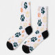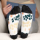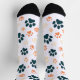 Step out in comfort and style with these charming socks featuring a playful design of paw prints and leaves in a variety of colours. The pattern includes dark teal, burnt orange, and light yellow paw prints and leaves scattered across a crisp white background. These socks are a perfect accessory for any animal lover or someone who enjoys fun, whimsical designs.
