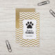 A graphic illustration of a paw print adorns this modern business or personal card. Background features a faux foil chevron pattern. Perfect for a pet-related business.