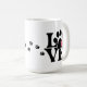 Adore this charming 15-ounce mug designed for dog and cat enthusiasts, featuring a heart-shaped paw print within the word 'Love'. It's ideal for any animal lover.