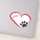 Show that your pup holds your heart with this stylised heart with a black pawprint and the word "woof!"