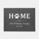 Doormat with home in large letter and a paw print replacing the O, and your family name and year established.